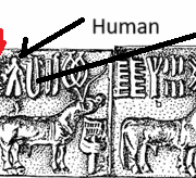 The seal above shows a bench-like symbol across the person’s stomach. It is not a bench symbol; it is the offering symbol, which typically resembles a comb symbol. Read my article, “Comb Symbol Indicates the Word Offering,” for more information. (Chapter 8 of my book). This shows that the man was sacrificed to appease the goddess Kali.